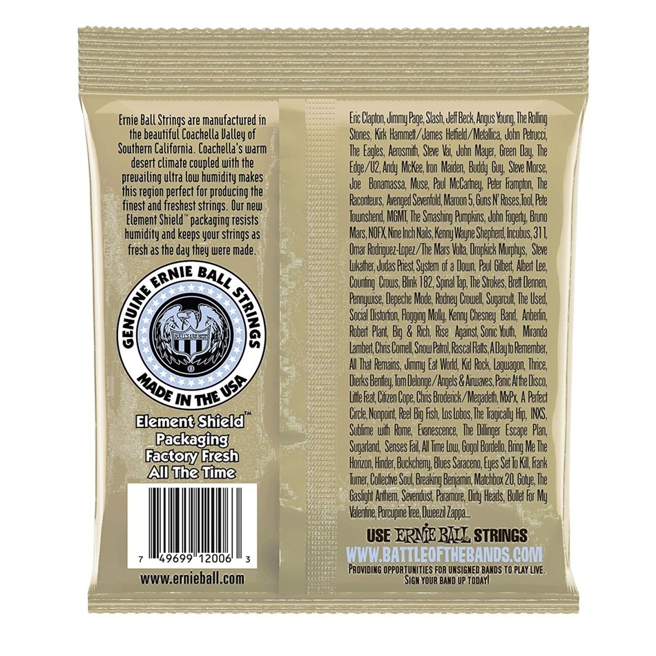 Durch seine lange Haltbarkeit, den lauten und ausgewogenen Klang, die präzise Intonation sowie die hohe Stimmstabilität empfiehlt sich der Ernie Ball 2006 Earthwood Bronze Saitensatz als zuverlässiger Begleiter vor allem für den anspruchsvollen Akustikgitarristen, der sich eine einfache Bespielbarkeit wünscht und dennoch nicht auf einen kraftvollen Klang für Akkorde verzichten möchte. Die geballte Kraft von über 50 Jahren Erfahrung in der Entwicklung von Saiten bei Ernie Ball macht auch die 2006 Earthwood Bronze Saiten zur ersten Wahl für akustische Gitarren – und das zu einem sehr fairen Preis.