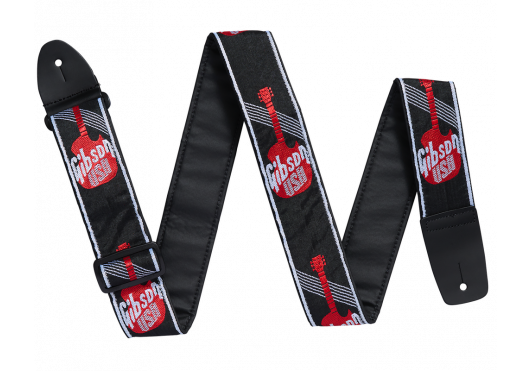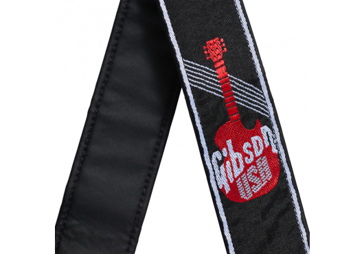 Dieser gewebte Gurt zeigt die Silhouette der legendären Les Paul Standard und ein Patchwork aus Gibson USA-Logos.