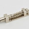 Die unsichtbare, arretierbare Nullstellung für jedes Federkammer-Tremolo. Ein kleiner Federmechanismus sorgt dafür, dass der Block des Tremolos immer an einem Anschlagsbolzen anliegt. Dieser Anschlag kann jedoch durch Überwindung der einstellbaren Federkraft der Rückstellfeder „weggedrückt“ werden. Dadurch kann sowohl nach unten als auch nach oben tremoliert werden. Äußerst einfacher Einbau (2 Schräubchen) im Tremolofach zwischen 2 Federn. ( Einbauanleitung auf www.Goeldo.de )