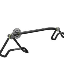 Dieser Wandhalter für Akustikgitarren sorgt durch die horizontale Aufhängung für einen echten Blickfang. Die flache, rutschsichere Konstruktion ermöglicht eine schnelle, einfache Anpassung des Neigungswinkels, und die selbstjustierenden, weich gepolsterten Aufnahmen bieten optimalen Halt für Hals und Korpus.