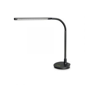 Diese ultraschlanke, elegante Tischleuchte in L-Form sorgt mit dem integrierten silikonbeschichteten Schwanenhals für ein präzise ausrichtbares, gleichmäßiges Licht. Die insgesamt 18 LEDs lassen sich zwischen warm- und kaltweiß umschalten (ca. 3.000/6.000 K), ein berührungsempfindlicher Ein- und Ausschalter erlaubt zudem stufenloses Dimmen. Der Schwanenhals ist leicht biegsam und behält seine Position sicher bei. Die Gravity Tischleuchte bietet zusätzlich einen einen praktischen USB-Ausgang zum Laden von Smartphones und Tablets und wird mit Netzteil geliefert. Sie eignet sich auch hervorragend als Pianoleuchte, Arbeitsleuchte oder Leseleuchte.