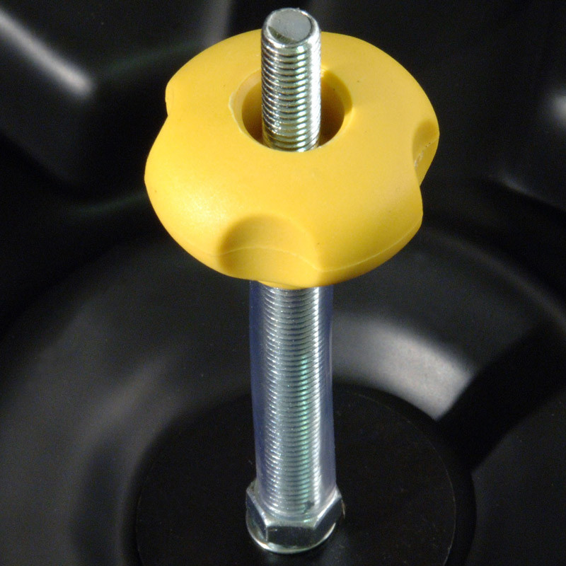* Wir empfehlen dringend, die freie Mittelspindel entsprechend der Anzahl der zu transportierenden Becken zuzuschneiden. Dadurch wird sichergestellt, dass die Becken sicher sind, wenn der Deckel in geschlossener Position ist und mit dem mitgelieferten Handrad verriegelt wird.