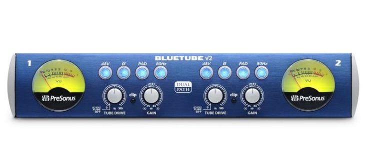 - 2 übersteuerungsfeste XMAX Class-A Mikrofonvorverstärker mit 80 dB Gain-Bereich und 48 V Phantomspeisung und einer 12AX7-Röhrenstufe mit Tube-Drive-Sättigungsregler