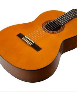 Die Konzertgitarre Yamaha CGS103A II ist die Neuauflage aus dem Jahr 2011 der beliebten Schülergitarre mit einer 3/4-Größe. Boden und Zargen der Yamaha CGS103A II bestehen weiterhin aus Meranti, einem tropischen Laubholz, und tragen eine Decke aus Fichte. An den Korpus schließt bei der Yamaha CGS103A II ein Natohals an, dessen 18-bündiges Griffbrett ebenso wie die Brücke aus Palisander besteht. Die natürliche Holzfarbe der Yamaha CGS103A II ist mit Hochglanzlack veredelt, sodass die Gitarre im Zusammenspiel mit der verchromten Hardware einen durchaus soliden Gesamteindruck hinterlässt.